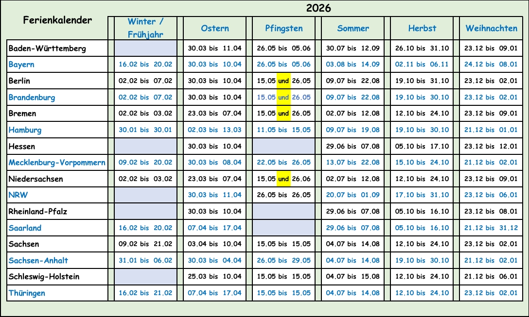 – In der Sommerferienzeit vom 27.06.2026 bis 06.09.2026 ist die FeWo nur ab 7 Nächte buchbar und Anreise samstags bzw. je nach Belegung nach Absprache.